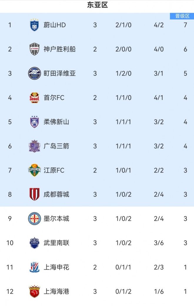 在成都蓉城、上海海港均在本轮输球的情况下,成都蓉城以3分暂列第8,而上海海港作为中超冠军,则是以1分排名垫底,另外,上海申花将在明晚对阵首尔FC,至于上海申花能否捍卫中超荣誉,大家拭目以待!